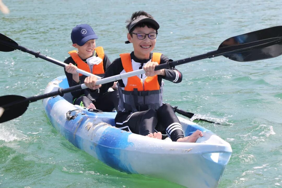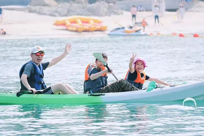 家长带着孩子们拿起划桨,一起坐上皮划艇,在浩海的大海上前行,培养了亲子之间的协作与默契,水中的一叶扁舟,让人无比欢乐!